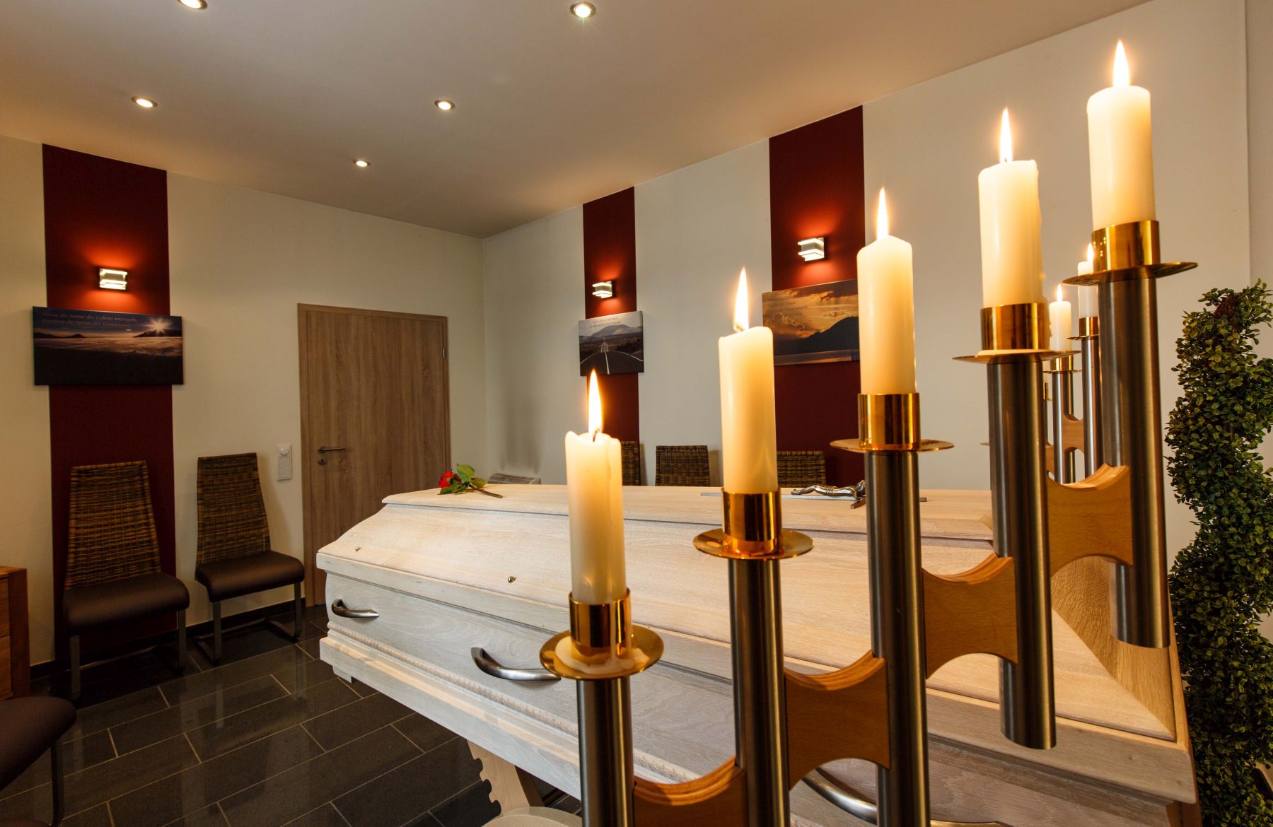 Auch ist es möglich eine Trauerfeier, ob mit Sarg oder Urne, in unseren Räumlichkeiten durchzuführen.
