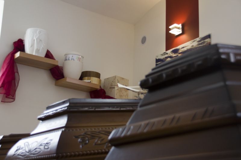 - Wir halten ein umfangreiches Sortiment bereit: Särge, Urnen, Sterbewäsche und Erinnerungsgefäße.